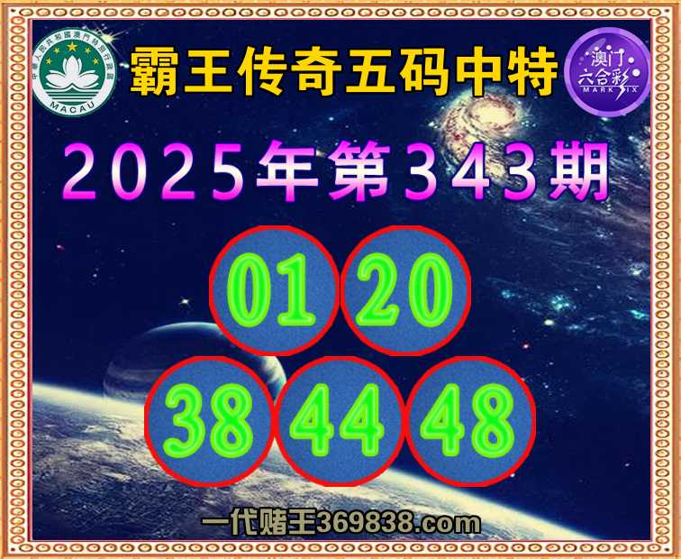 343期:〖霸王传奇〗 ☺️五码中特☺️【01.20.38.44.48】开:38