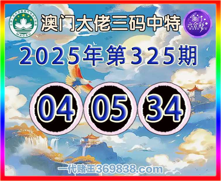 325期: 澳门大佬 🎆三码中特🎆【04.05.34】开:04