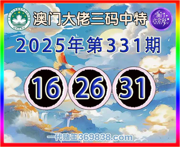 331期: 澳门大佬 🎆三码中特🎆【16.26.31】开:26