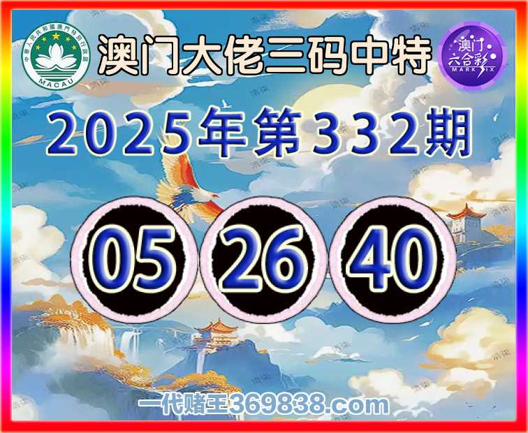 332期: 澳门大佬 🎆三码中特🎆【05.26.40】开:26